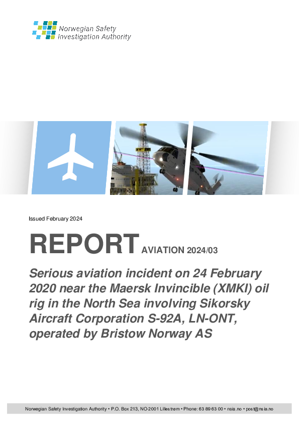 Final Report S92 (LN-ONT), vicinity Maersk Invincible Platform North Sea, 24 February 2020