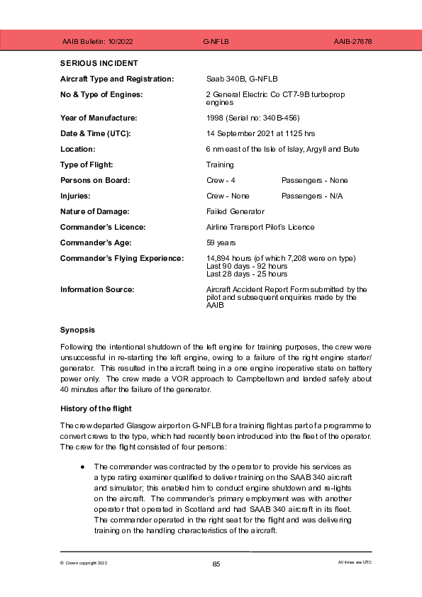 Final Report SF34 (G-NFLB), manoeuvring, SW Scotland UK, 14 September 2021