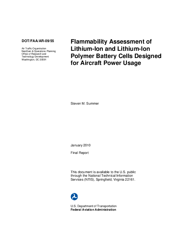 Flammability Assessment of Lithium-Ion and Lithium-Ion Polymer Battery Cells Designed for Aircraft