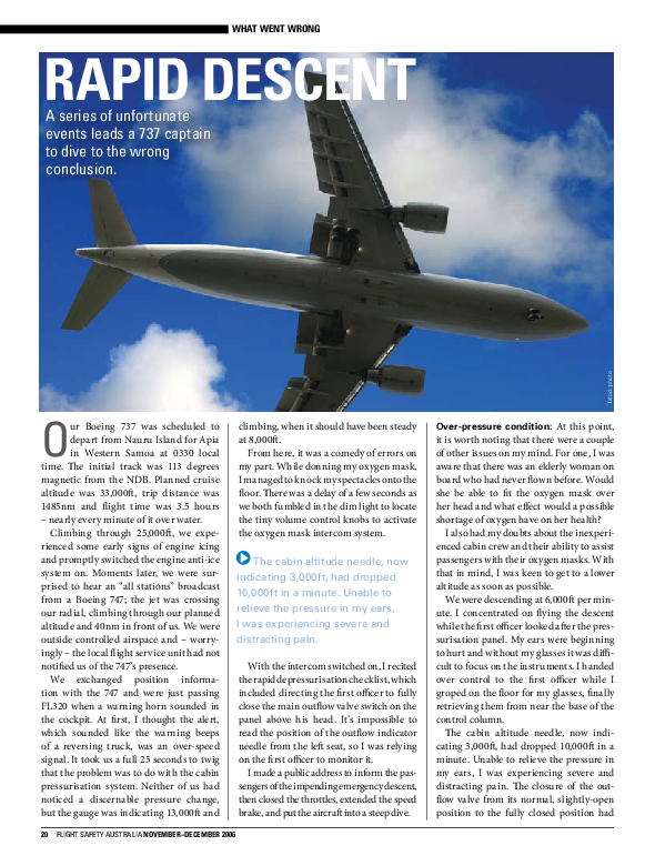 Flight Safety Australia article: Rapid descent, Nov-Dec 2006