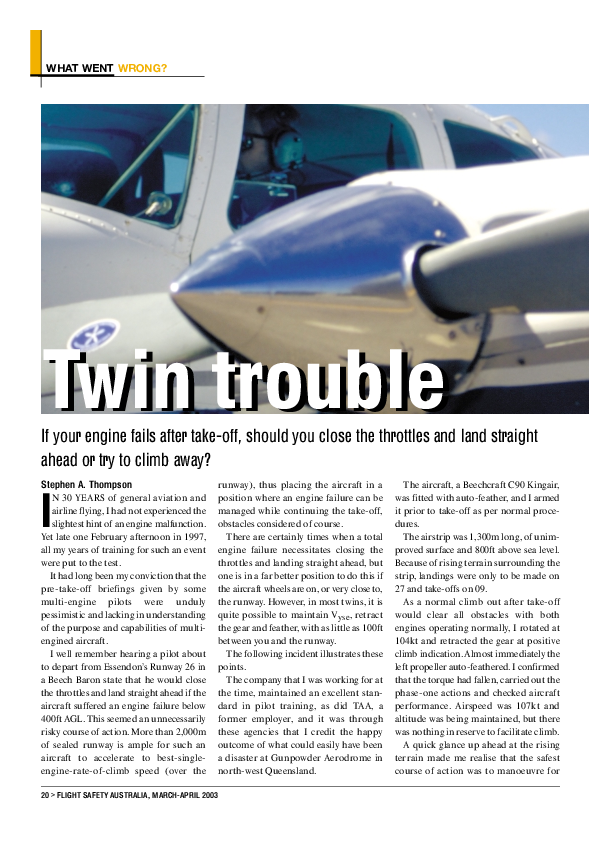 Flight Safety Australia article: Twin trouble, March-April 2003