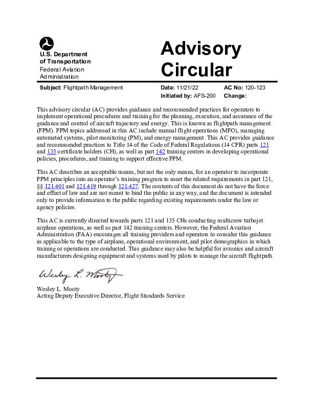 Flightpath Management, AC 120-123
