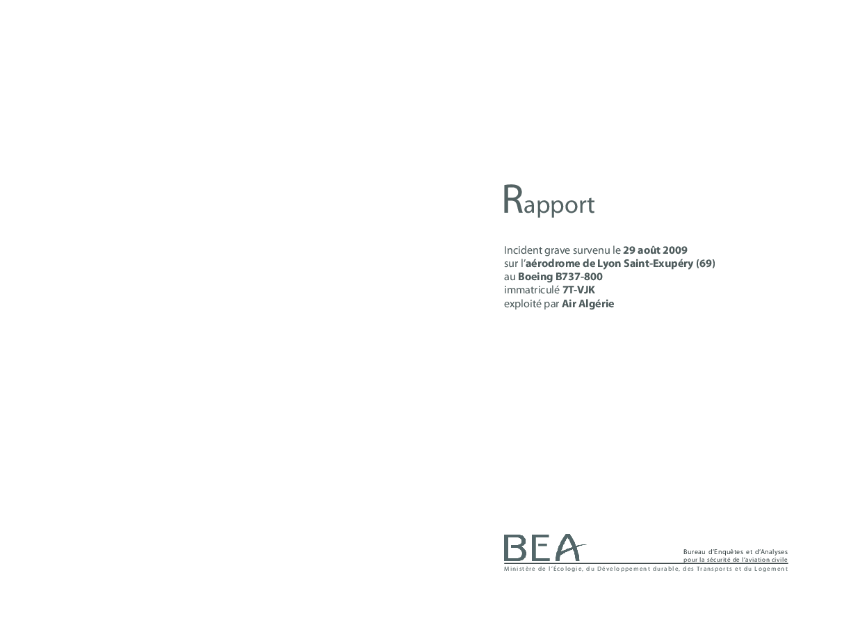 (French) Aviation safety occurence report, runway excursion B738, Lyon France, 29 Aug 2009