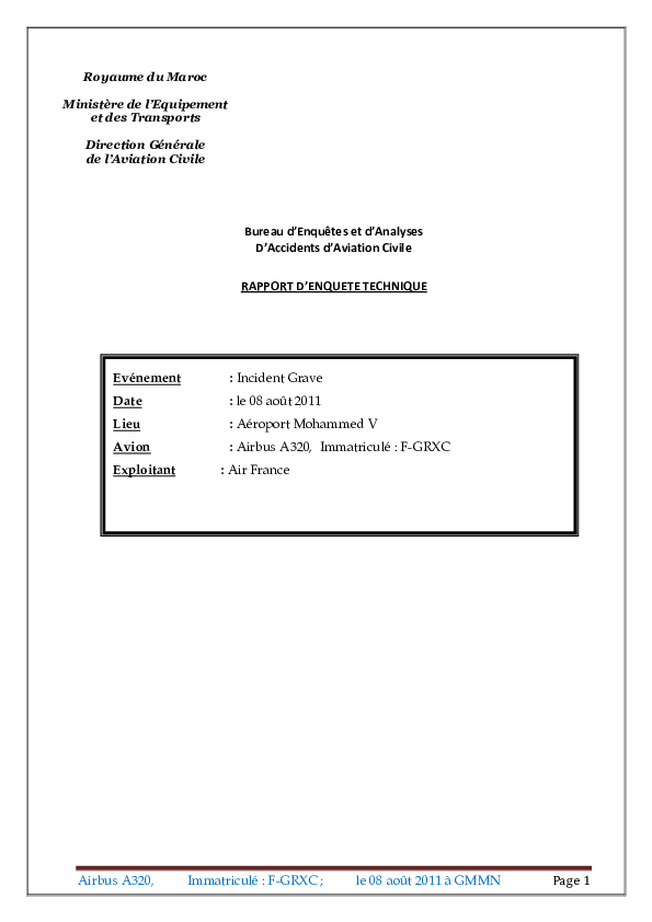 (French) Serious Incident Report: A319, wrong runway use, Casablanca Morocco, 8 Aug 2011