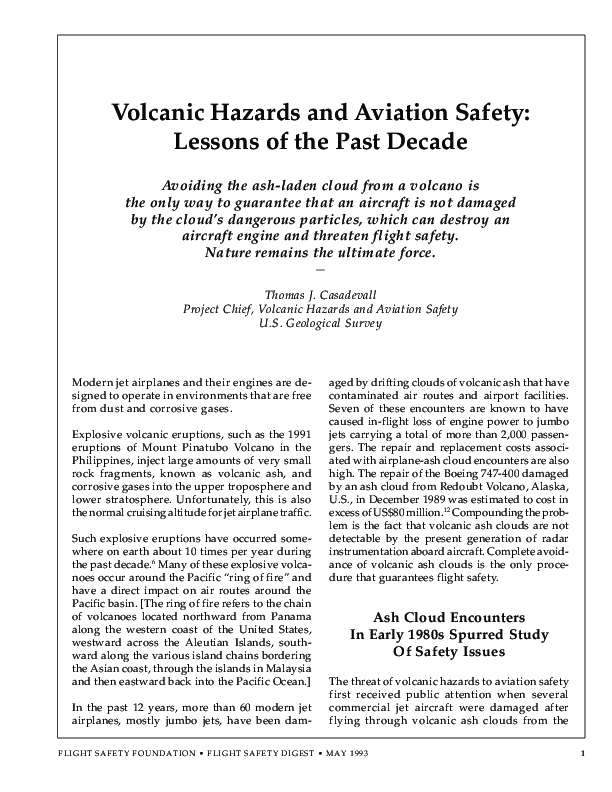 Volcanic Hazards and Aviation Safety: Lessons from the past Decade an article in the Flight Safety Foundation Flight Safety Digest May 1993