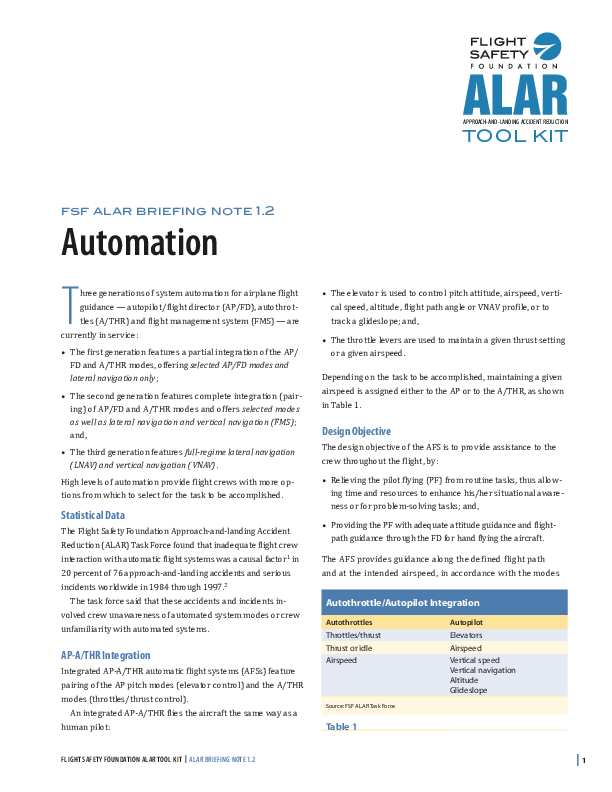 FSF ALAR Briefing Note 1.2 - Automation