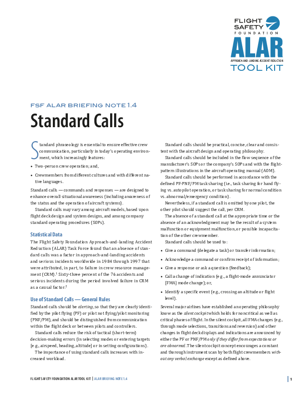 FSF ALAR Briefing Note 1.4 - Standard Calls