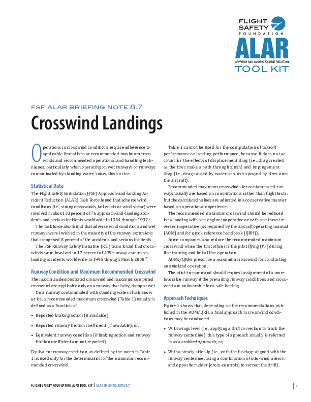 FSF ALAR Briefing Note 8.7 - Crosswind Landings