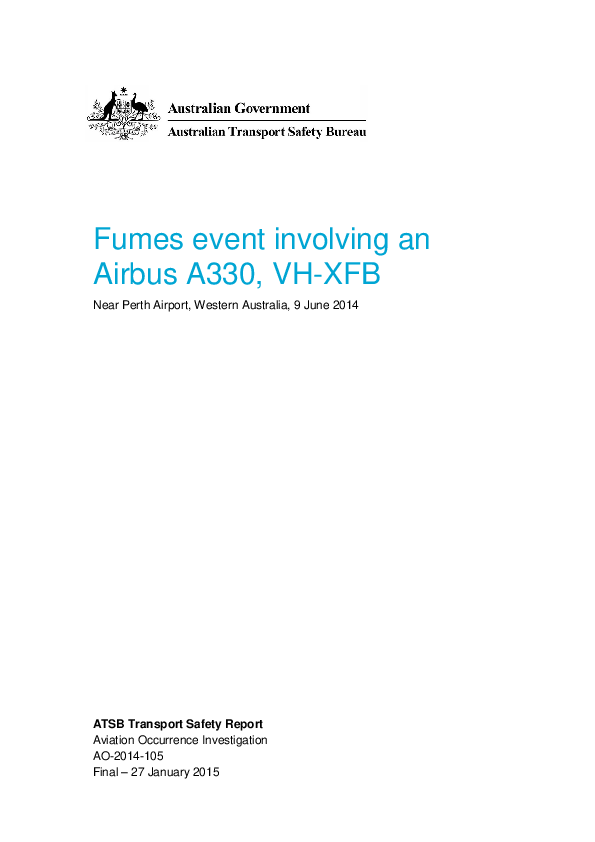Fumes event involving an Airbus A330, Near Perth Airport, Western Australia, 9 June 2014