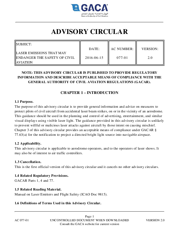 GACA AC 77-01 'Laser emissions that may endanger the safety of civil aviation'