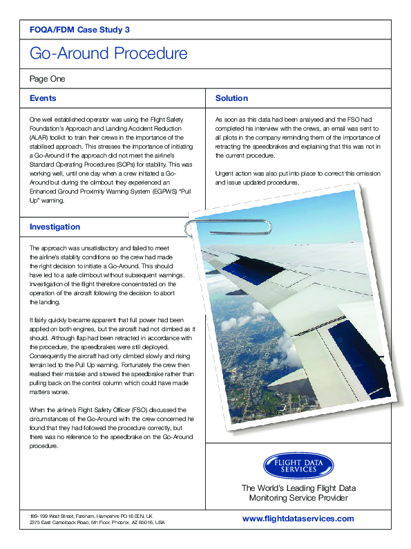 Flight data monitoring revealed that aircraft performance was lower than expected during a go-around. Analysis uncovered an important shortcoming in the company SOPs, which was quickly corrected.