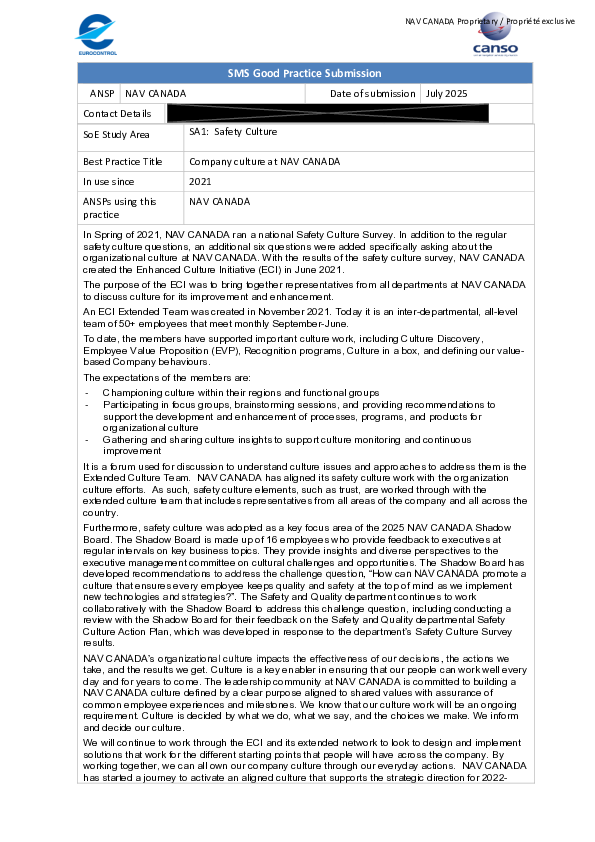 GP SA 1 Safety Culture: Company culture at NAV CANADA