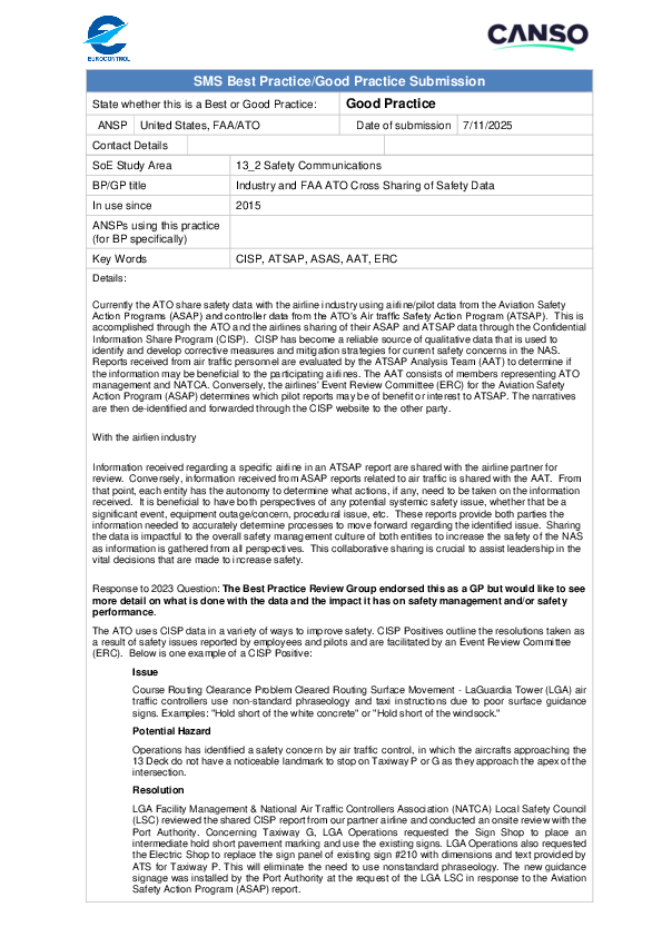 GP SA 13.2 Safety Communications: Industry and FAA ATO Cross Sharing of Safety Data