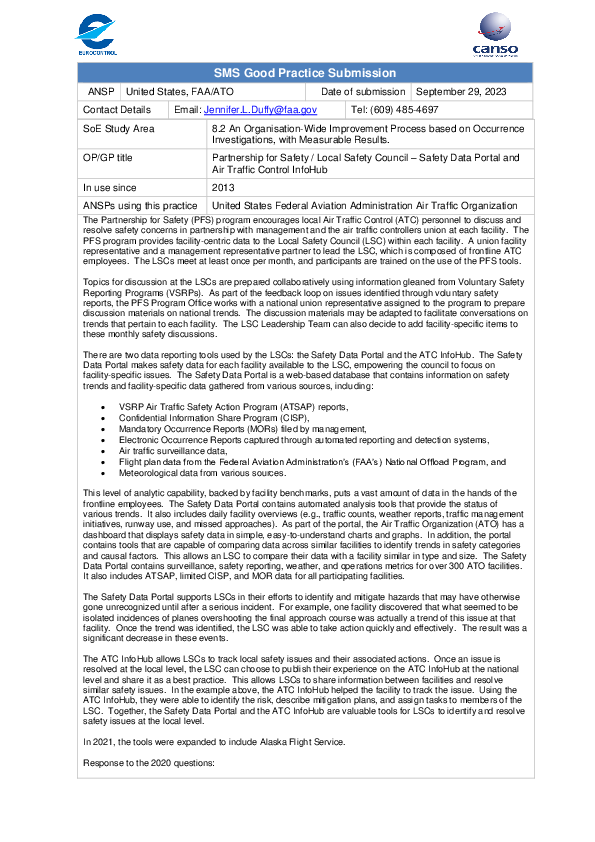 GP SA 8.2 Partnership for Safety / Local Safety Council – Safety Data Portal and Air Traffic Control InfoHub