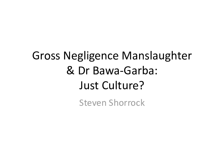 Gross Negligence Manslaughter & Dr Bawa-Garba: Just Culture?