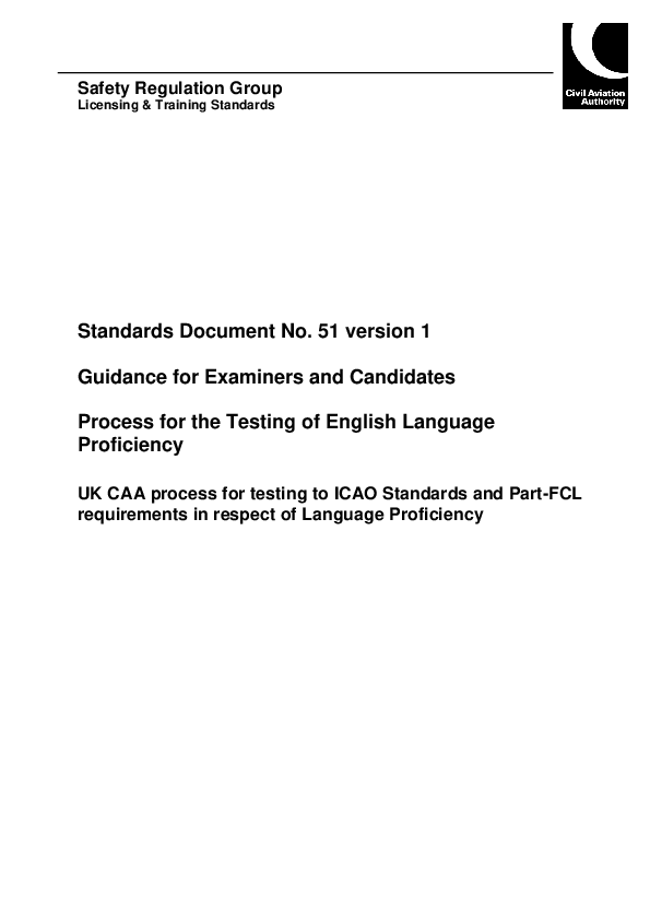 UK CAA process for testing to ICAO Standards and Part-FCL requirements in respect of Language Proficiency