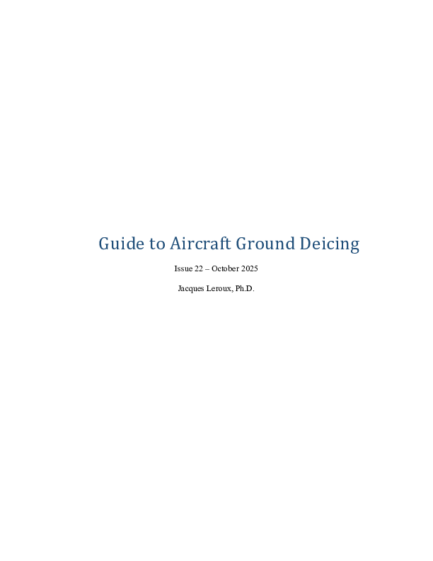 This document provides an introduction to aircraft ground deicing, a brief description of the forty five current documents issued by the SAE G-12 Aircraft Ground Deicing Committee, documents issued by other SAE Committees, guidance issued by regulators, the FAA, Transport Canada, EASA and ICAO, documents issued by airframe manufacturers (e.g., Boeing), a list of abbreviations, an index, and flowcharts for the documents and a list of preferred words and expressions.