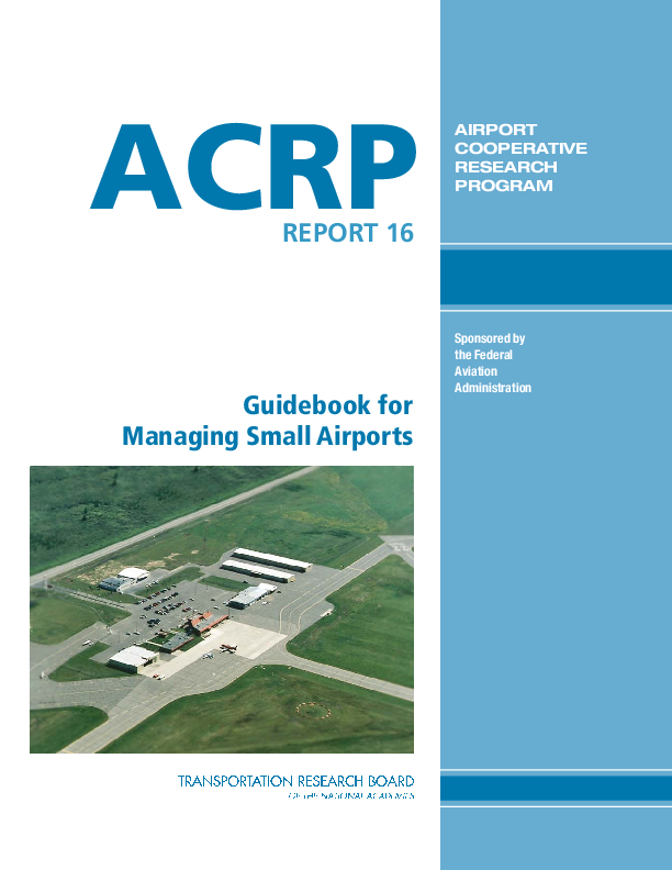 The objective of this project was to develop a guidebook for managing small airports that would be a single source of information for airport owners, operators, managers, and policy makers. The challenge lay in creating a guidebook that addresses an extraordinarily wide range of topics as succinctly as possible and that is relevant to an extremely diverse audience while presenting information in an easy-to-use manner.
