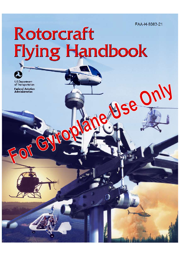 FAA-H-8083-21 Rotorcraft Flying Handbook - For Gyroplane Use Only The FAA Rotorcraft Flying Handbook is designed as a technical manual for applicants who are preparing for their private, commercial, or flight instructor pilot certificates with a gyroplane class rating. It includes detailed coverage of aerodynamics, flight controls, systems, performance, flight maneuvers, emergencies, and aeronautical decision making.