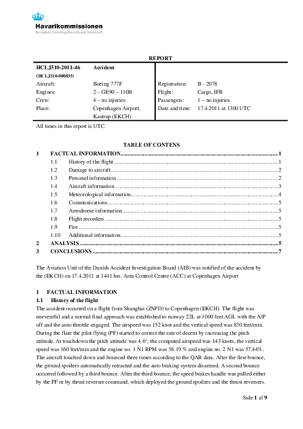 HCLJ510-2011-46 - accident report B77L tail strik on landing, Copenhagen Denmark, 17 Apr 2011