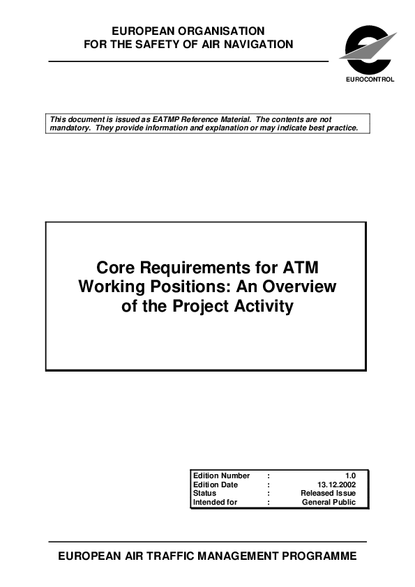 This document provides an overview of the work being undertaken with the ‘Core Requirements for ATM Working Positions (CoRe)’ Project. The objective of this project is to improve both the process and outcomes of activities directed at upgrading the working positions of air traffic controllers.