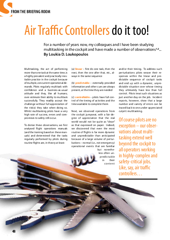 For a number of years now, my colleagues and I have been studying multitasking in the cockpit and have made a number of observations