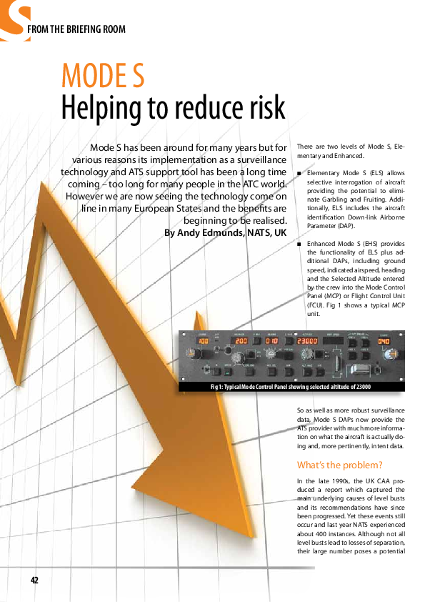 Mode S has been around for many years but for various reasons its implementation as a surveillance technology and ATS support tool has been a long time coming “ too long for many people in the ATC world. However we are now seeing the technology come on line in many European States and the benefits are beginning to be realised.