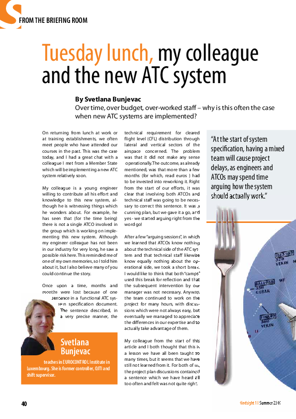 Hindsight 11 - Tuesday lunch, my colleague and the new ATC system