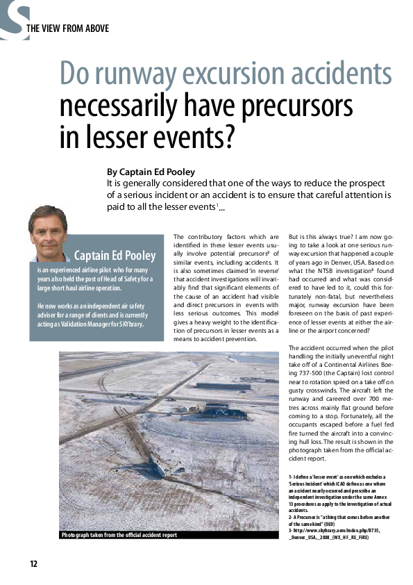 Hindsight 12 - Do runway excursion accidents necessarily have precursors in lesser events?