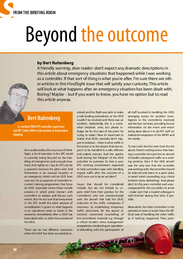A friendly warning, dear reader: dont expect any dramatic descriptions in this article about emergency situations that happened while I was working as a controller. If that sort of thing is what youre after, Im sure there are other articles in this HindSight issue that will satisfy your curiosity. This article will look at what happens after an emergency situation has been dealt with. Boring? Maybe – but if you want to know, you have no option but to read this article anyway.