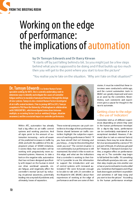HindSight 20 - Working on the edge of performance: the implications of automation
