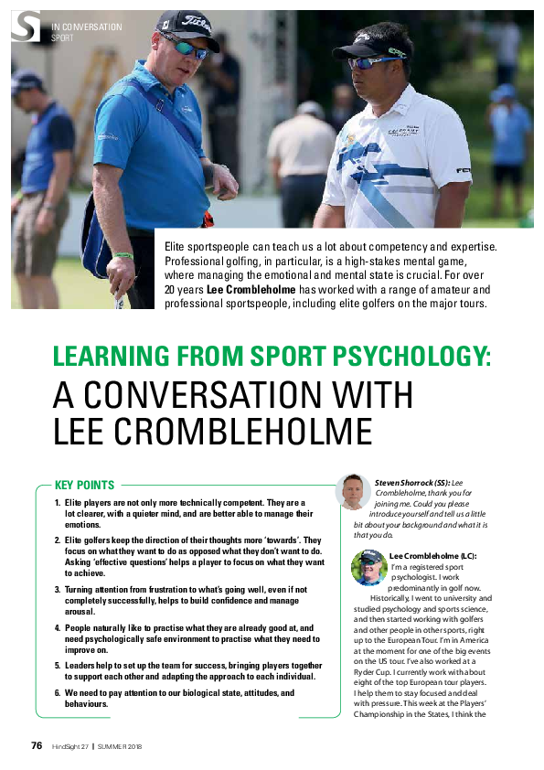 HindSight 27 - Expertise in elite professional golfers: An interview with Lee Crombleholme