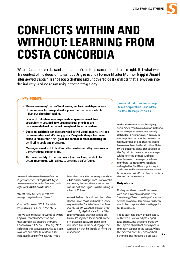 HindSight 29 - Conflicts within and without: learning from Costa Concordia