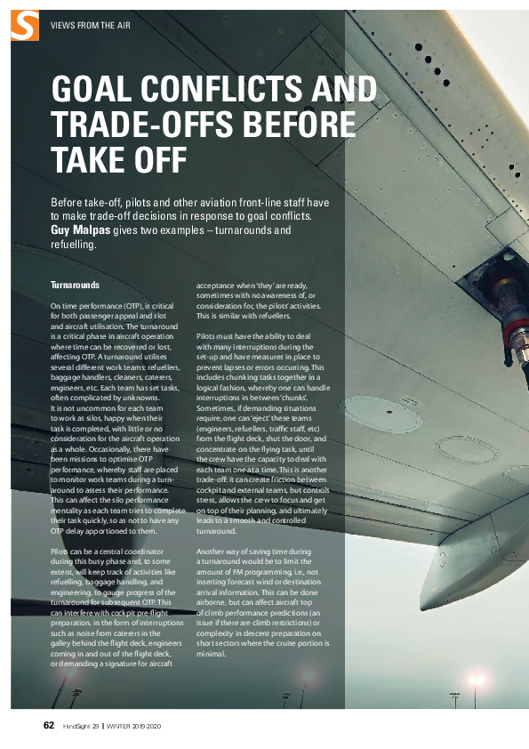 HindSight 29 - Goal conflicts and trade-offs before take off