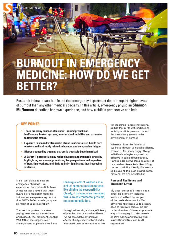 HindSight 30 - Burnout in emergency medicine: how do we get better?