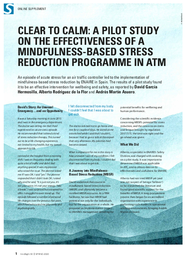 HindSight 30 - Clear to Calm: A pilot study on the effectiveness of a mindfulness-based stress reduc