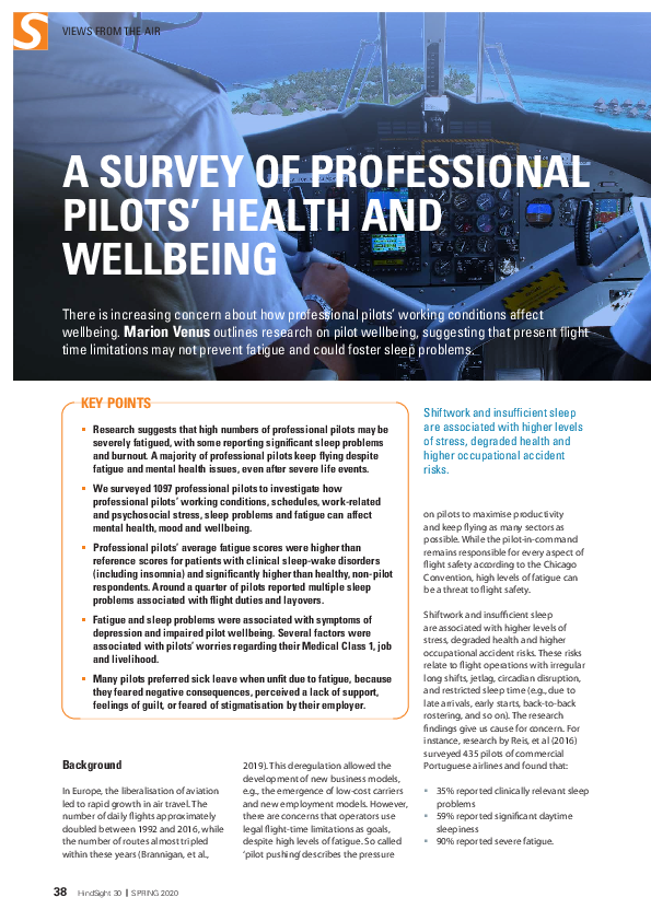 HindSight 30 - A survey of professional pilots' health and wellbeing