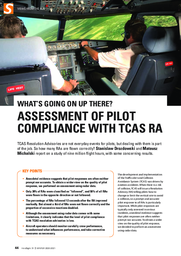 HindSight 31 - Assessment of pilot compliance with TCAS RA