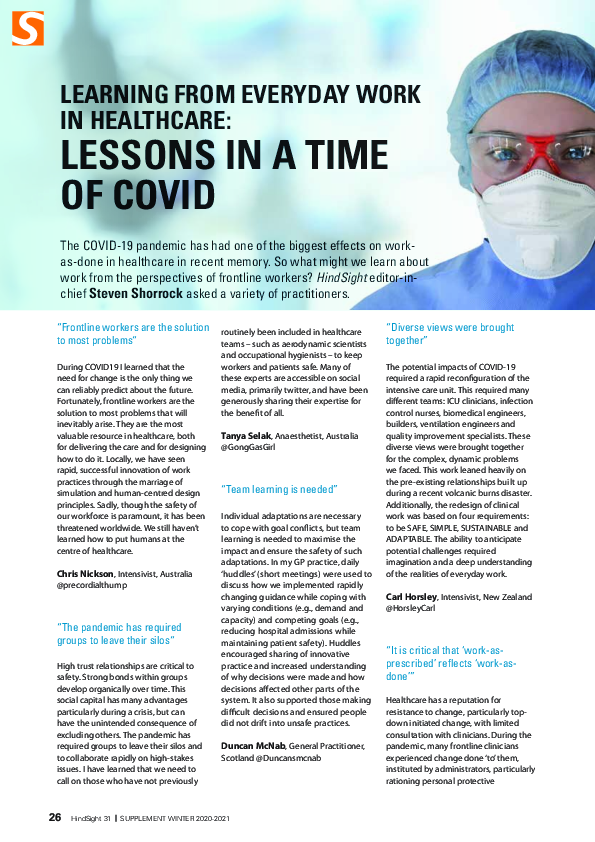 HindSight 31 - Learning from everyday work in healthcare: lessons in a time of COVID