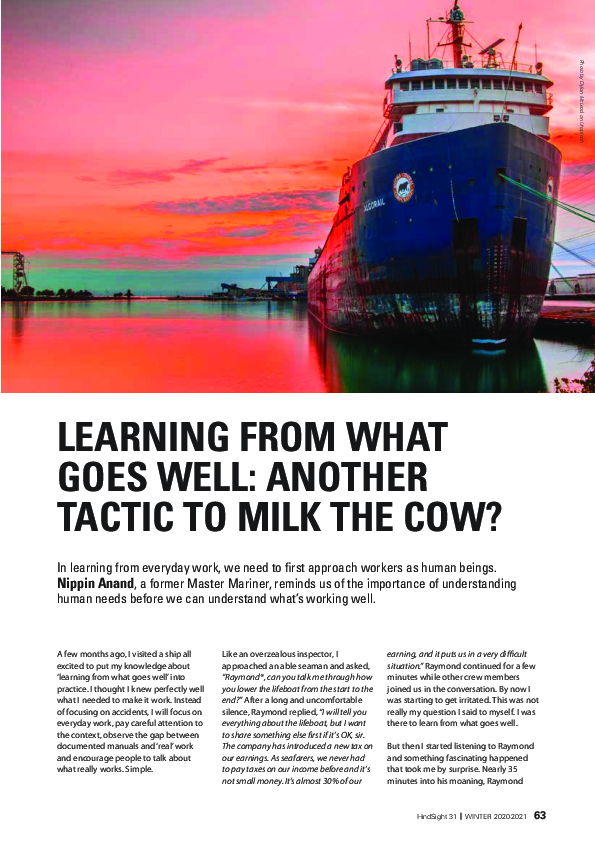 HindSight 31 - Learning from what goes well: another tactic to milk the cow?