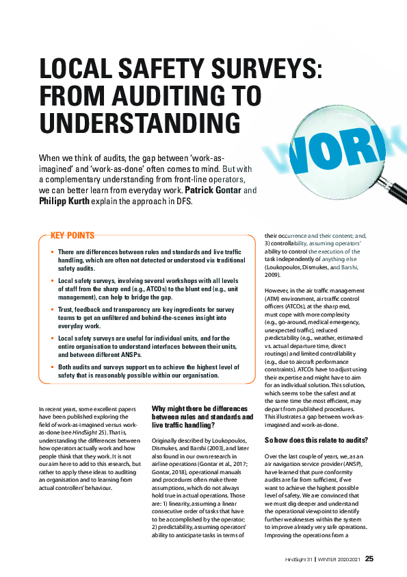 HindSight 31 - Local safety surveys: from auditing to understanding