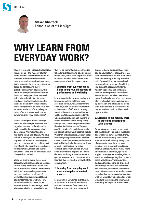 HindSight 31 - Why learn from everyday work?