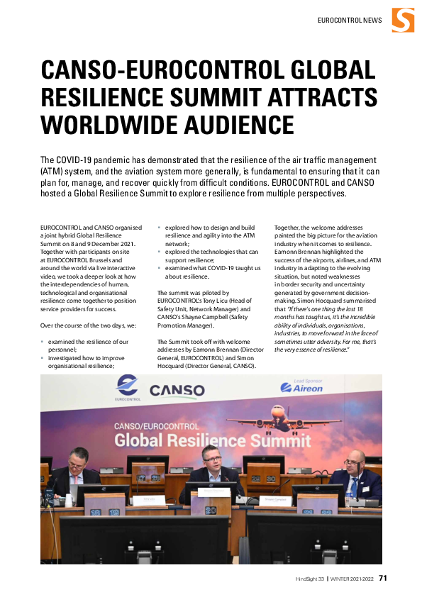 Hindsight 33 - CANSO-EUROCONTROL Global Resilience Summit attracts world-wide audience