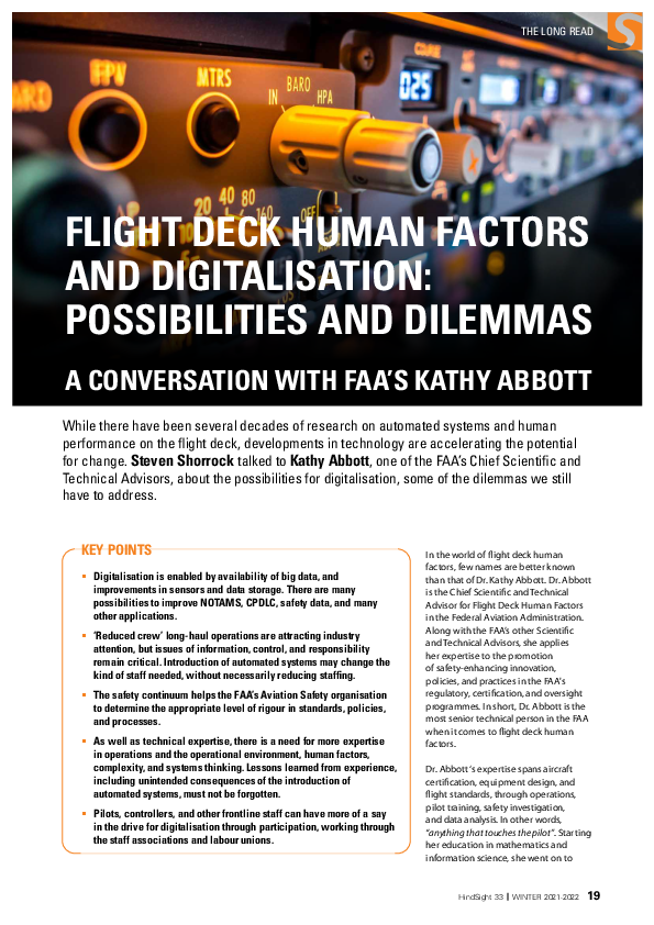 Hindsight 33 - Flight deck human factors and digitisation: possibilities and dilemmas