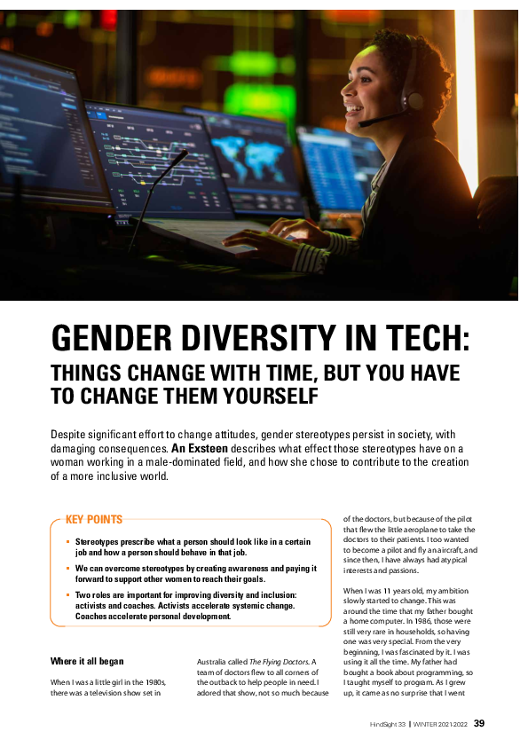 Hindsight 33 - Gender diversity in Tech: Things change with time, but you have to change them yourself