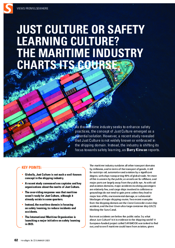 HindSight 35 - Just Culture or safety learning culture? The maritime industry charts its course
