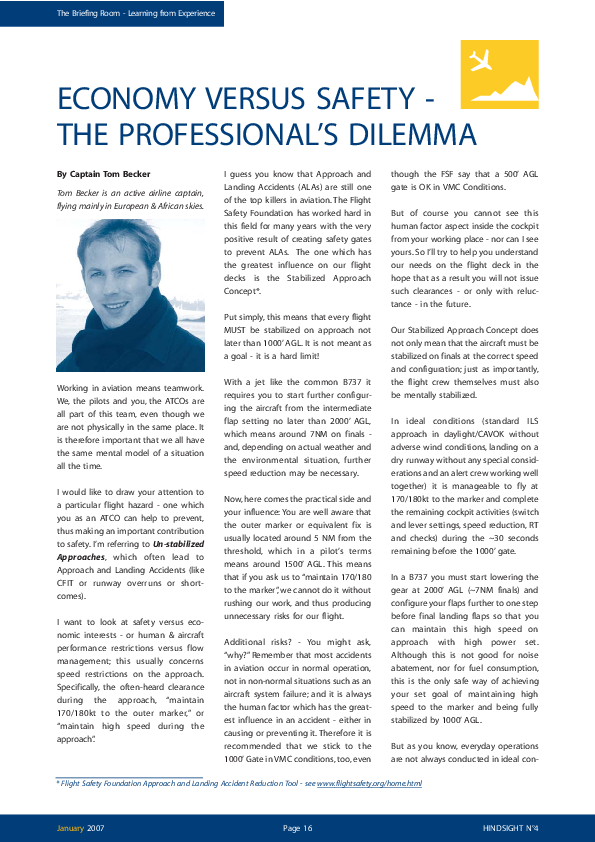 HindSight 4 - Economy versus Safety - The Professionals Dilemma