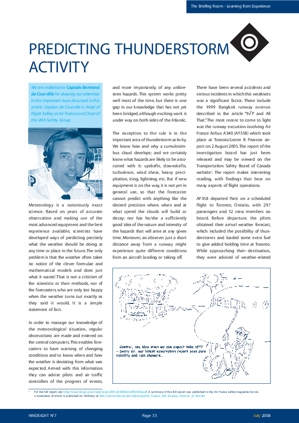 A recent runway excursion accident highlighted the difficulty of predicting precisely what conditions may be expected near an area of thunderstorm activity. This article reviews the lesson learnt