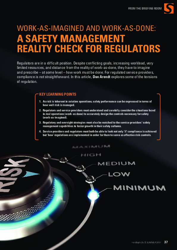 HS25: Work-as-imagined, work-as-done: A safety management reality check for regulators