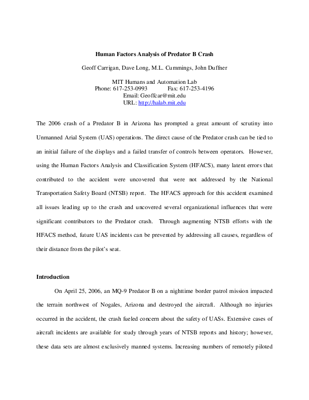 Human Factors Analysis of Predator B Crash